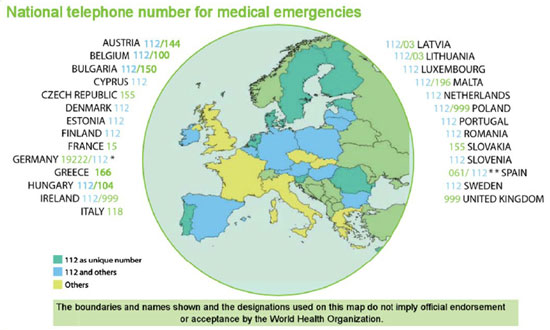 Figure 3: For the majority of EU countries, 112 is the emergency phone number.