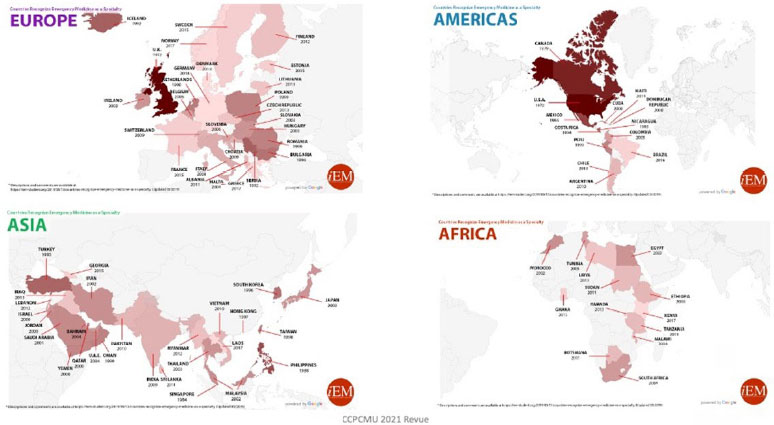 The development of the Anglo-Saxon or European model of MU training Emergency Medicine Education initiatives are increasingly developed globally through national and international EM organizations.