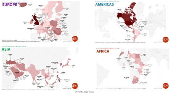 Figure 4: The emergency room activity in countries in Europe, Asia, North America and Africa.