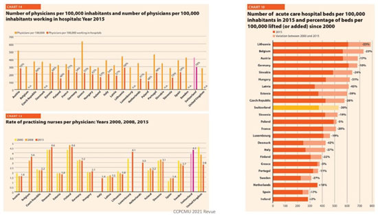 Figure 5: Number of physicians and number of acute care hospital beds per 100.000 inhabitants.