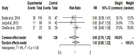 Além disso, como o ponto de tempo para avaliar a mortalidade diferiu entre os estudos, uma análise adicional de sensibilidade foi realizada agrupando os dados de três estudos focados apenas na mortalidade em 28 dias (imagem 3). Ainda assim não havia um risco significativamente maior de morte em indivíduos expostos ao etomidato (RR agrupado 0.95; IC 95% 0.76; 1.19; p= 0.68; I2, 0%).
