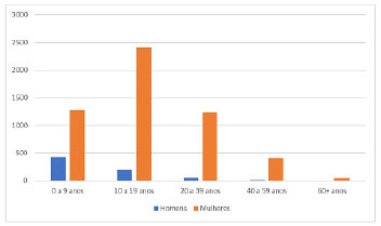 Na tabela 1 foi feita uma análise dos casos de violência sexual por faixa etária segundo sexo. Foi possível observa que indivíduos do sexo feminino representaram mais de 85% das notificações, com destaque para a faixa etária de 10 a 19 anos de idade. Outrossim, é necessário mencionar que as notificações de violência sexual contra a mulher, além de serem as mais frequentes, crescem de maneira exponencial, apenas no Brasil a prevalência de violência cometida por “não parceiros” é de 7,6% enquanto a média mundial se mantém em 7,2%.