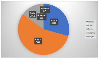 Na tabela 2, observa-se a violência relacionada a raça e é possível destacar o maior número de notificações representado pela raça parda. Vale mencionar que entre crianças a questão da raça parda perdura, um estudo feito em Manaus evidenciou que de 70% das crianças do sexo feminino que sofreram violência sexual eram da raça parda, sendo que dentre elas, a maioria não frequentava a escola7.
