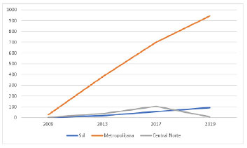 Ademais na tabela 3 demonstra as notificações de violência sexual por macrorregião do estado do Espírito Santo. Nota-se um aumento contínuo a cada ano, com destaque para a região metropolitana, é importante destacar que o ano de 2020, devido à pandemia, sofreu com subnotificações. Nesse sentido, cabe mencionar o fato de que regiões metropolitanas tendem a ter uma maior quantidade de notificações por violência sexual devido, dentre outros fatores, uma maior estrutura de denúncias.