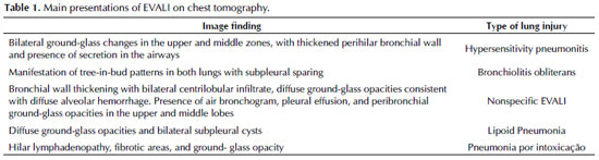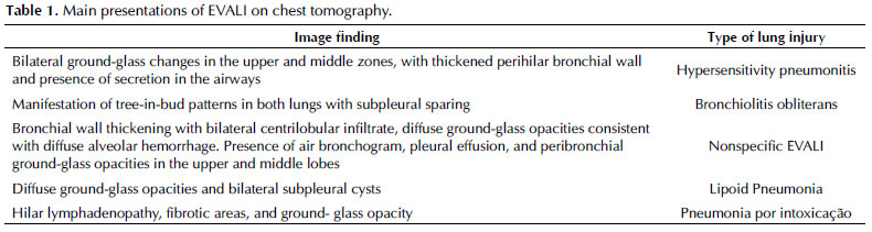 EVALI is a recent pathology with a nonspecific clinical presentation, being diagnosed mainly through a recent history of vaping and radiological exams with consistent findings.