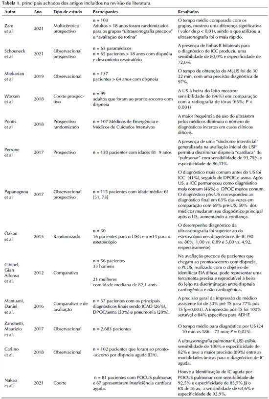 A presente revisão, objetivou ressaltar a relevância do uso do POCUS na detecção rápida de dispnéias causadas por IC, avaliando a precisão do método em comparação à radiografia convencional. Portanto, quando se compara ambas as ferramentas de diagnóstico, a ultrassonografia à beira do leito demonstrou sua importância, devido a sua alta acurácia, se tornando uma via rápida e eficaz em ambientes de urgência e emergência, permitindo uma varredura em tempo real para orientação e intervenção imediata. Dessa forma, quando usado corretamente por profissionais capacitados, a US à beira do leito pode permitir que o profissional chegue ao diagnóstico correto mais rapidamente, acelerando assim a tomada de decisão terapêutica eficaz e, talvez, diminuindo o tempo de internação dos pacientes e o desfecho dos óbitos, já que o atraso no reconhecimento da patologia resulta em um pior prognóstico e custos elevados ao sistema de saúde.