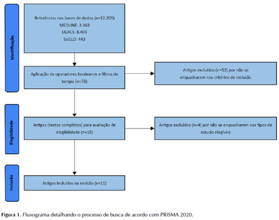 Assim, após a análise detalhada, foram incluídos textos completos, e estudos de meta análises e revisões integrativas, ensaios clínicos e estudos de coorte entre junho a dezembro de 2021, totalizando 11 artigos. Foram excluídos os textos escritos em outros idiomas que não inglês, revisão de literatura, textos de livros, textos incompletos e textos com acesso restrito a assinatura particular. Desta forma, foram encontrados 12.209 artigos expostos na Tabela 1.