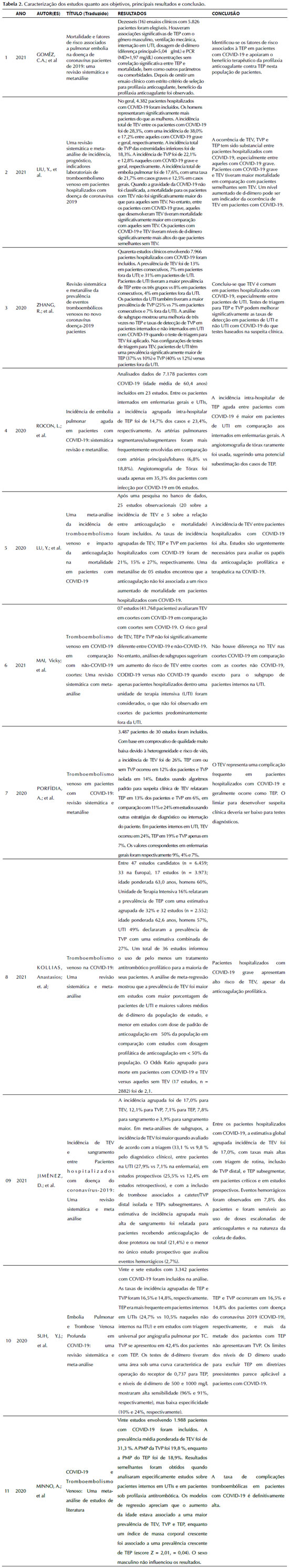 Nos trabalhos de metanálise apresentados na tabela, verificamos alguns estudos realizados com pacientes com COVID-19 e a provável associação da condição com eventos trombóticos como TVP e TEP, por diversos mecanismos conforme ilustrado na Figura 02.