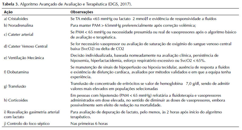 Por fim, é seguido o algoritmo avançado de avaliação e terapêutica, demonstrado na tabela 3.