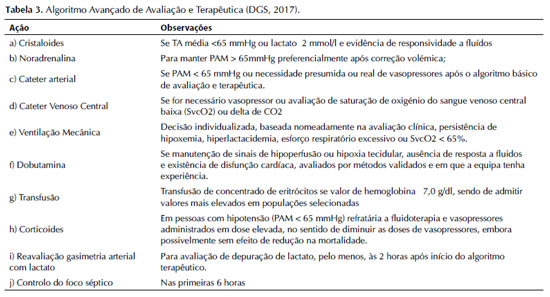 Rahman et al.31 identificam a necessidade de formação permanente e a valorização da experiência do profissional de saúde o diagnóstico diferencial. A DGS9 reconhece que a medidas avançadas com suporte vasopressor, um profissional de saúde experiente é essencial.