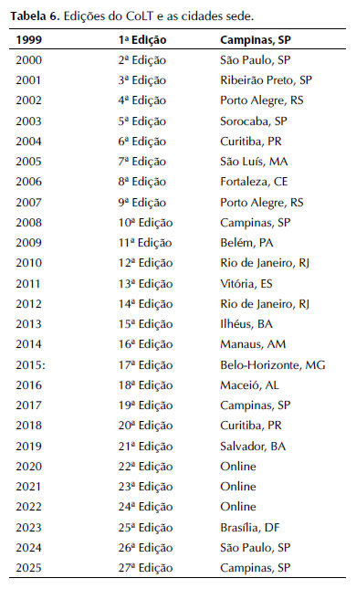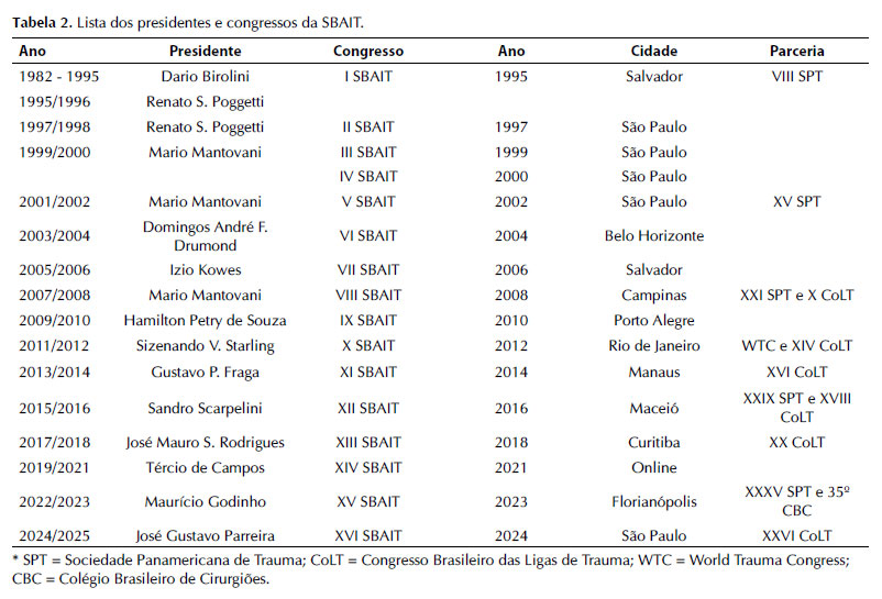 A Tabela 2 resume a lista dos presidentes e congressos da SBAIT desde a criação em 1982.