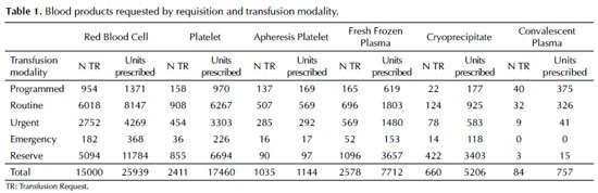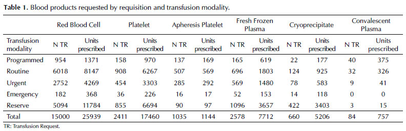 RESULTS: A total of 21,768 transfusion requests were registered in the period, resulting in the prescription of 58,218 blood products to 13,823 patients. Of these, only 300 were performed on an emergency basis.